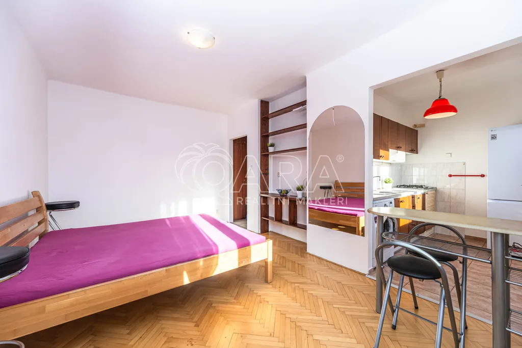 Byt leží na 4. podlaží a je bez výtahu, ale berte to tak, že máte každý den zdarma fitness program a tím lepší kondičku než většina Pražanů! A těch pár schodů Vám bohatě vynahradí klid a skvělé výhledy z horního patra. Tento byt nabízí příjemných 30 m². Pronajímá se částečně vybavený – přesně jak vidíte na fotografiích, takže se nemusíte starat o stěhování všeho a hned můžete začít bydlet. Ideální prostor pro ty, kteří ocení efektivitu, světlost a jednoduchou údržbu.
