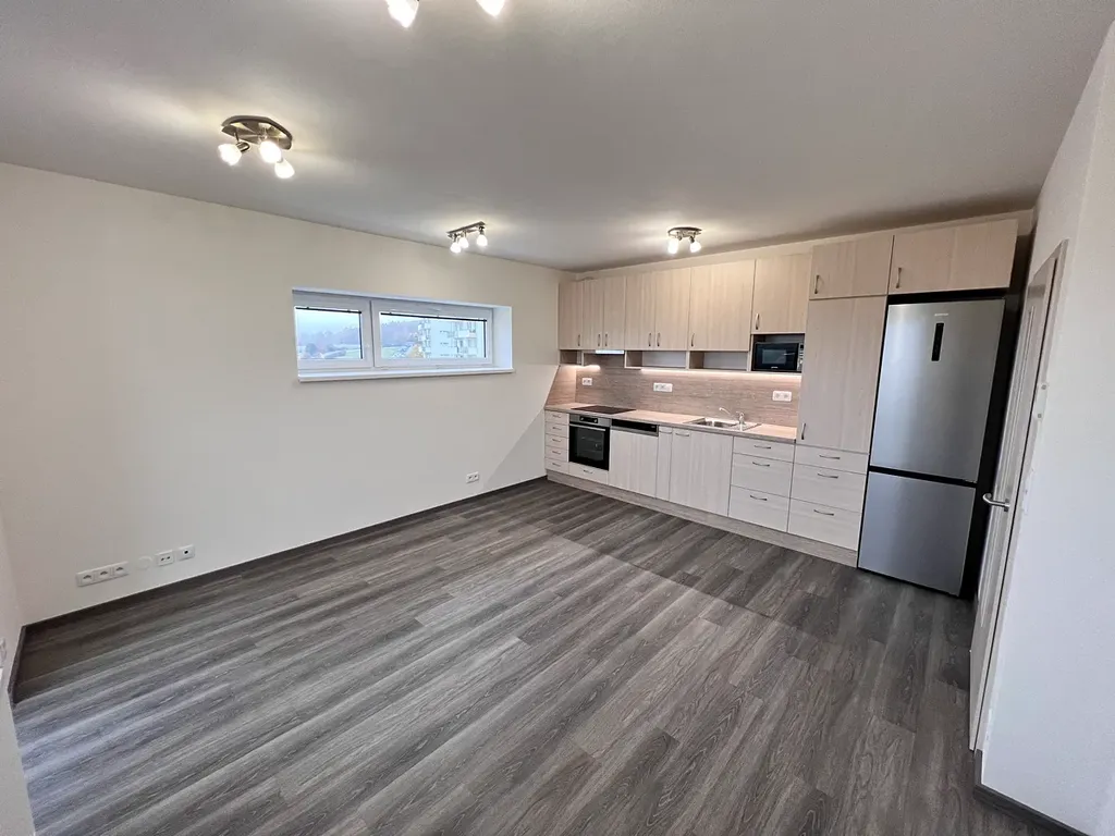 Vstup do bytu je možný přes chodbu, která zpřístupňuje ostatní místnosti v bytě. Nachází se zde hlavní obytný prostor s plně vybavenou kuchyňskou linkou (21 m2) a se vstupem na prostornou terasu. Ze spotřebičů je zde k dispozici lednice s mrazákem, mikrovlnná trouba, myčka, trouba, indukční deska a digestoř (vše značky Gorenje). Z obytných pokojů se zde nachází ložnice o velikosti 13 m2. Z chodby je dále přístup do velmi pěkné a moderní koupelny (4,3 m2) se sprchovým koutem, umyvadlem se skříňkou, toaletou a otopným žebříkem. Velkým benefitem je vlastní garážové stání v suterénu bytového domu a možnost uložení věcí do sklepa. Aktuálně je byt dále vybavený sedačkou, postelí (s rošty), regálem na uložení věcí a botníkem.