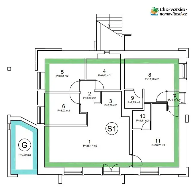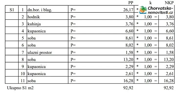 CHORVATSKO-NEMOVITOSTI.cz nabízí slunečný pětipokojový apartmán 109m2 v přízemí s prostornou zahradou a zelení. Apartmán S1 je klimatizovaný, o velikosti 109m2, kdy je dělen na 3 apartmány - 1 třípokojový apartmán a dvě garsoniéry. Má stejnou vzdálenost k moři a k centru města tj.250m. Nachází se v přízemí apartmánového domu. Před domem je parkovací místo, pro váš vůz. Nedaleko možnost nákupu potravin. Do města Novalja se dostanete pohodlnou kvalitní silnicí z trajektu nebo z mostu, spojující pevninu a ostrov Pag. Podrobně o apartmánu: