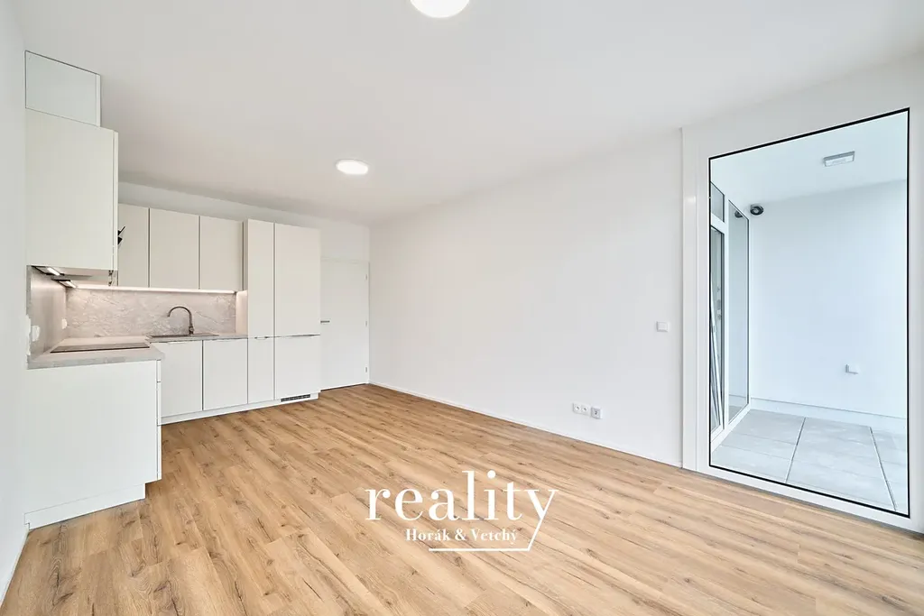 Součástí bytu je také prostorná sklepní kóje. Je možné si pronajmout i garážové stání v podzemní garáži rezidence (+ 1500 Kč/měsíc).
