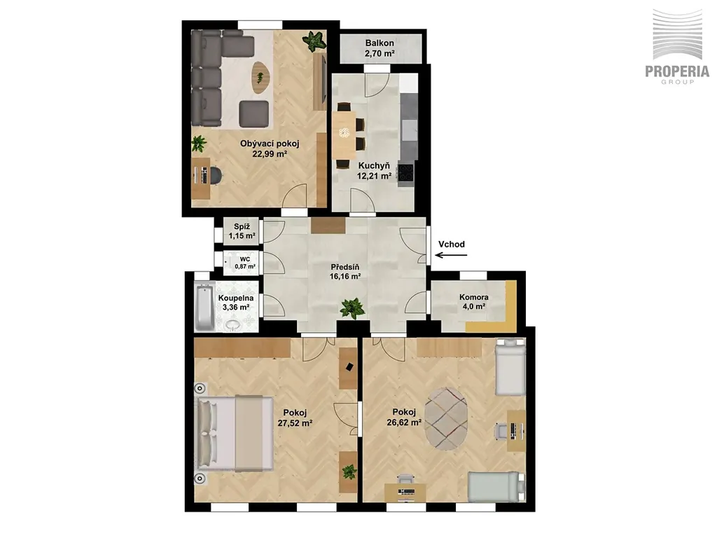 Hlavní přednosti bytu: