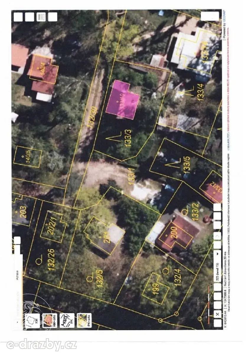 Předmětem dražby je jedna polovina rekreační chaty č.ev. 29 postavené na lesním pozemku č. parc. 133/10 v obci Hradec Králové, katastrální území Roudnička. Rekreační chata č.ev. 29 a lesní pozemek na kterém se chata nachází má rozdílné vlastníky. Pozemek zastavěný chatou a pozemek, který na zastavěný pozemek navazuje jsou užívány na základě uzavřené nájemní smlouvy s vlastníky obou pozemkových parcel. Rekreační chata se nachází v ulici K Chatám, rekreační oblasti v okrajové části města Hradce Králové. Lokalita je zastavěna nemovitostmi, které jsou užívány jak k trvalému bydlení tak k rekreaci. Přístup k nemovitosti je po nezpevněné komunikaci polní cestě. V dané lokalitě je z inženýrských sítí vybudován pouze elektrický proud, ostatní sítě nejsou v dané lokalitě chatové oblasti vybudovány. Kanalizace je řešena vlastními jímkami a taktéž voda je řešena vlastními studnami. Jak jímka na odpadní vody, tak studna se nacházejí na přilehlém pozemku č. parc. 133/3 lesní pozemek, který není ve vlastnictví vlastníků rekreační chaty.