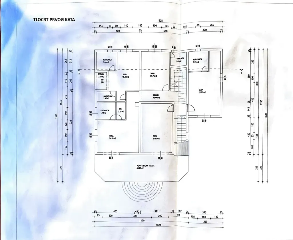 Dům je napojený na vodovodní řád a od moře je vzdálený 600 m.