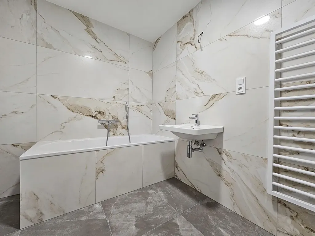 V bytě aktuálně probíhají dokončovací práce interiéru podle návrhu architekta. Prostor působí mimořádně vzdušně a nadčasově. Kombinace kvalitně zvolených materiálů a chytrého dispozičního řešení vytváří prostředí, které je nejen esteticky působivé, ale také praktické pro každodenní život. Byt se bude pronajímat částečně zařízený, což výrazně sníží počáteční náklady na nové bydlení. K dispozici bude kuchyňská linka na míru s vestavěnými spotřebiči, pračka, sušička, vestavěné šatní skříně, umyvadlová skříňka, komoda, jídelní stůl a postel.