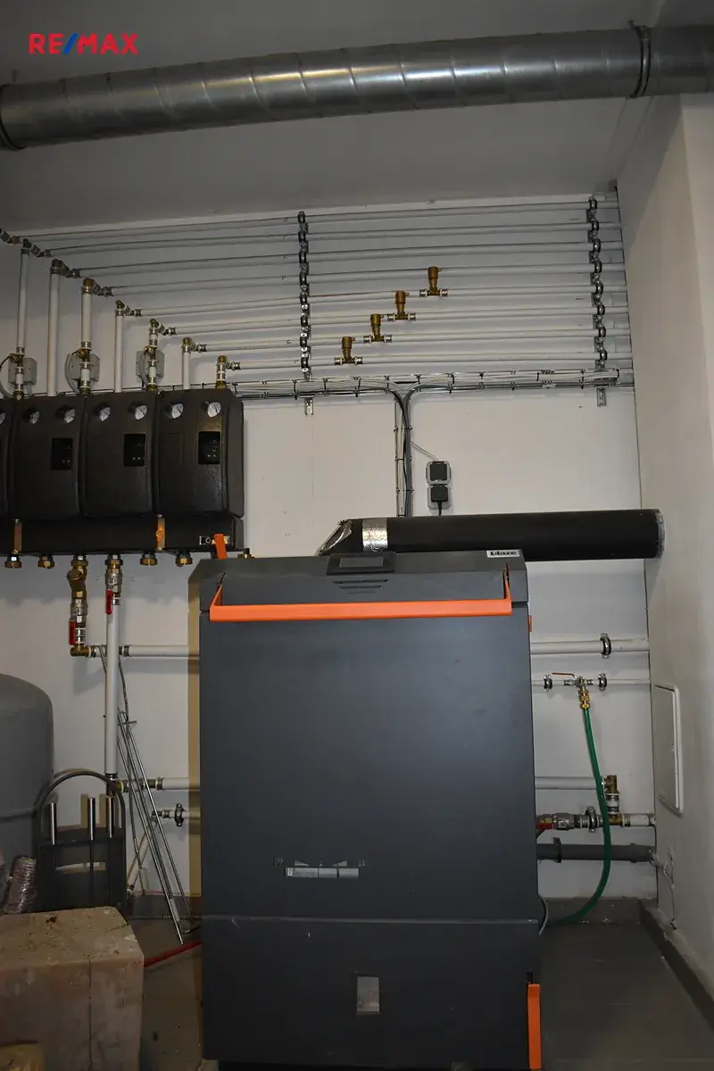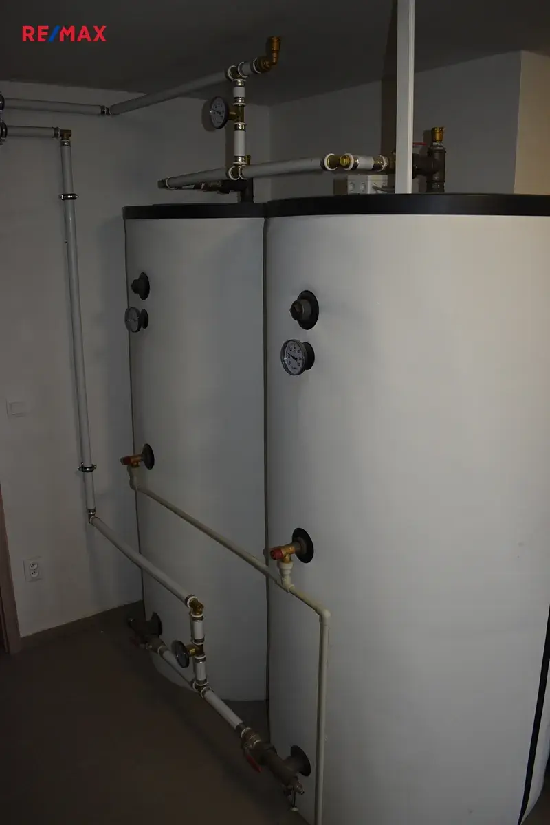 Technologie a zdroje - Topení: kotel na tuhá paliva Blaze Harmony, Příprava teplé vody: zásobníkový bojler, Voda: vlastní zdroj pro celý objekt, Odpad: vlastní ČOV, Elektřina: 220 V / 380 V, Okna: plastová, Střecha a střešní krytina: sedlová střecha s taškami, dokončené inženýrské sítě po celém pozemku (voda, kanalizace, elektřina)