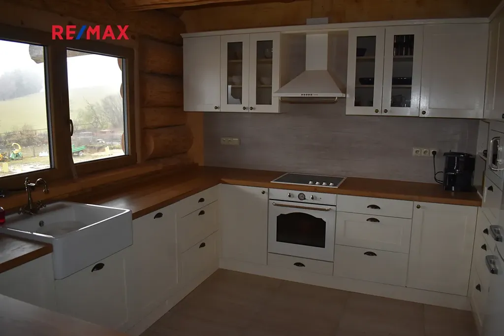 Součástí prodeje je také budova – Srub: je vybudován na zděném přízemí/suterénu z masivní kulatiny. Technická soběstačnost (centrální topení, vlastní voda, příprava TUV, ČOV) a nízká energetická náročnost hlavní budovy (PENB B) zajišťuje dlouhodobě ekonomické užívání. Nemovitost je vhodná pro spojení a využívání nadstandardního rodinného bydlení v čisté přírodě s podnikáním. Srub je využíván k bydlení. Aktuálně ve stádiu dílčích dokončovacích prací směřujících pro kolaudaci. Předpoklad kolaudace 04/26. Možnost nastěhování koncem 05/26.
