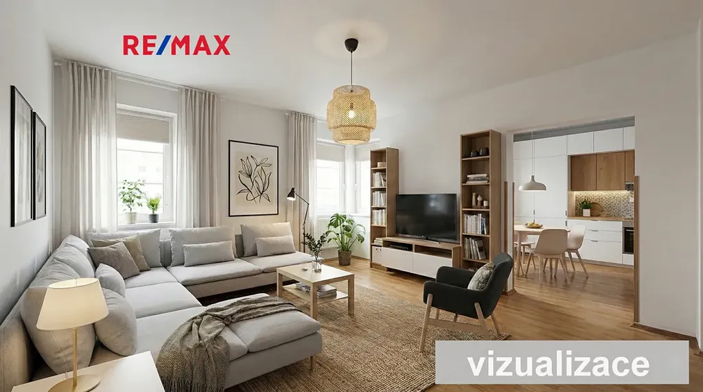 Součástí prezentace je 3D prohlídka nabízené nemovitosti. Ta Vám umožní, virtuálně se nemovitostí projít a udělat si představu o současném stavu a využití jednotlivých částí bytu. Fotografie jsou doplněny o vizualizace, které mohou pomoci představit si budoucí uspořádání a využití místností.