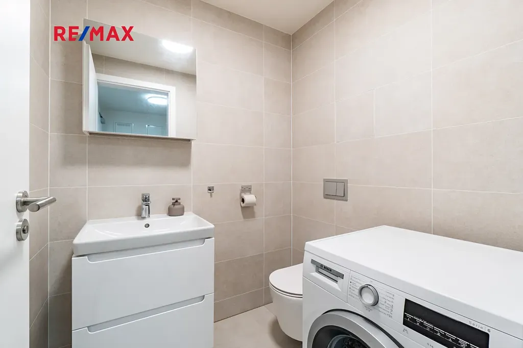 Součástí pronájmu je sklep o velikosti 6 m² a garážové parkovací stání v –1. podzemním podlaží domu. Komfort bydlení zajišťuje podlahové topení, klimatizace a hliníková okna s izolačním trojsklem a venkovními žaluziemi.