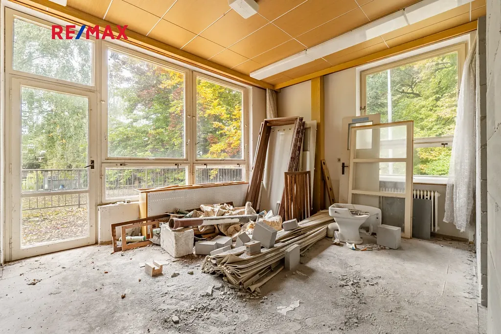 Nabízíme k prodeji objekt, který dříve sloužil jako součást místní školy. Nemovitost o celkové výměře 1848 m², sestávají ze zastavěné plochy a nádvoří 300 m² a navazující ostatní plochou o výměře 1548 m². Stavba je aktuálně ve fázi rozestavěné rekonstrukce – původně s projektem na ubytovnu pro seniory s možností vytvořit až 7 samostatných bytových jednotek 1+kk, každou s vlastním sociálním zázemím.