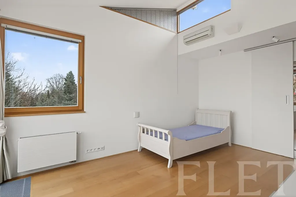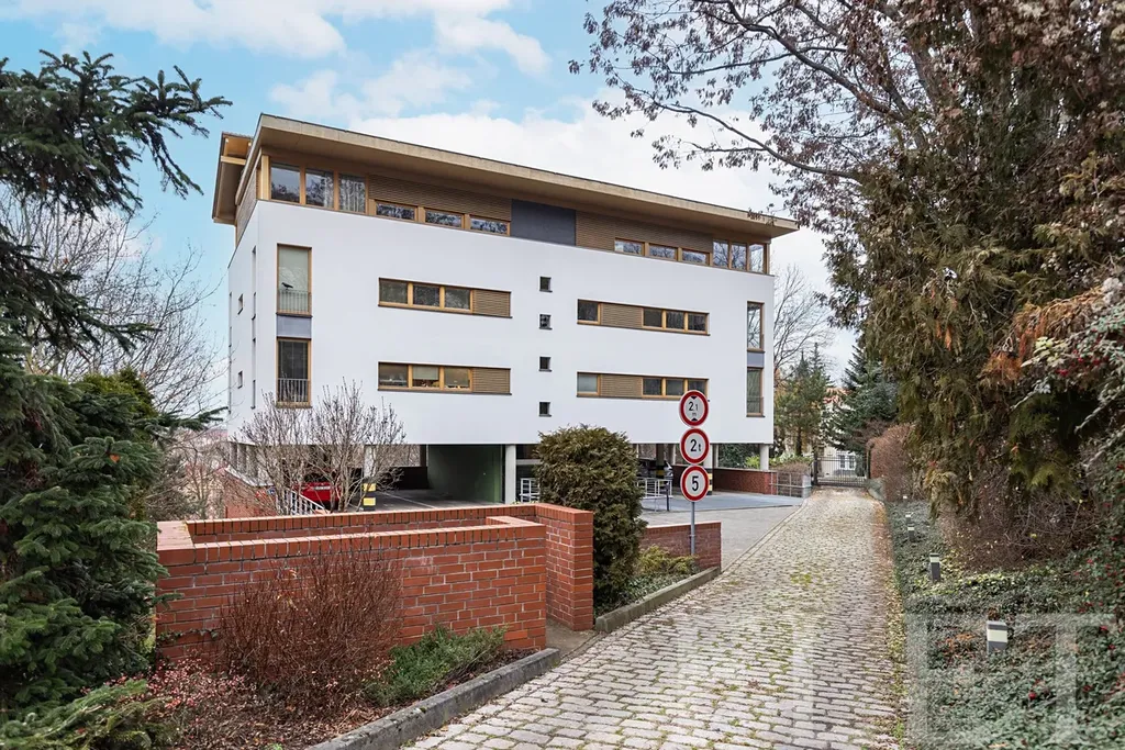 Samozřejmostí je vysoký standard vybavení – klimatizace, elektronicky ovládané rolety, alarm, trezor, sklep i garážové stání přímo v domě. Vše je navrženo s důrazem na bezpečnost, pohodlí a maximální kvalitu bydlení.