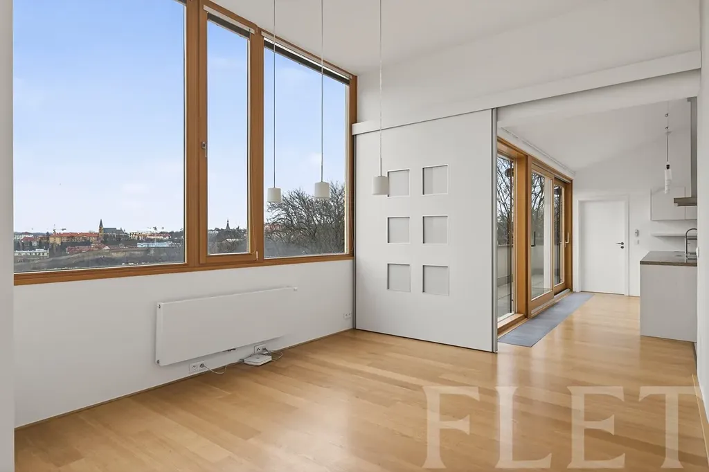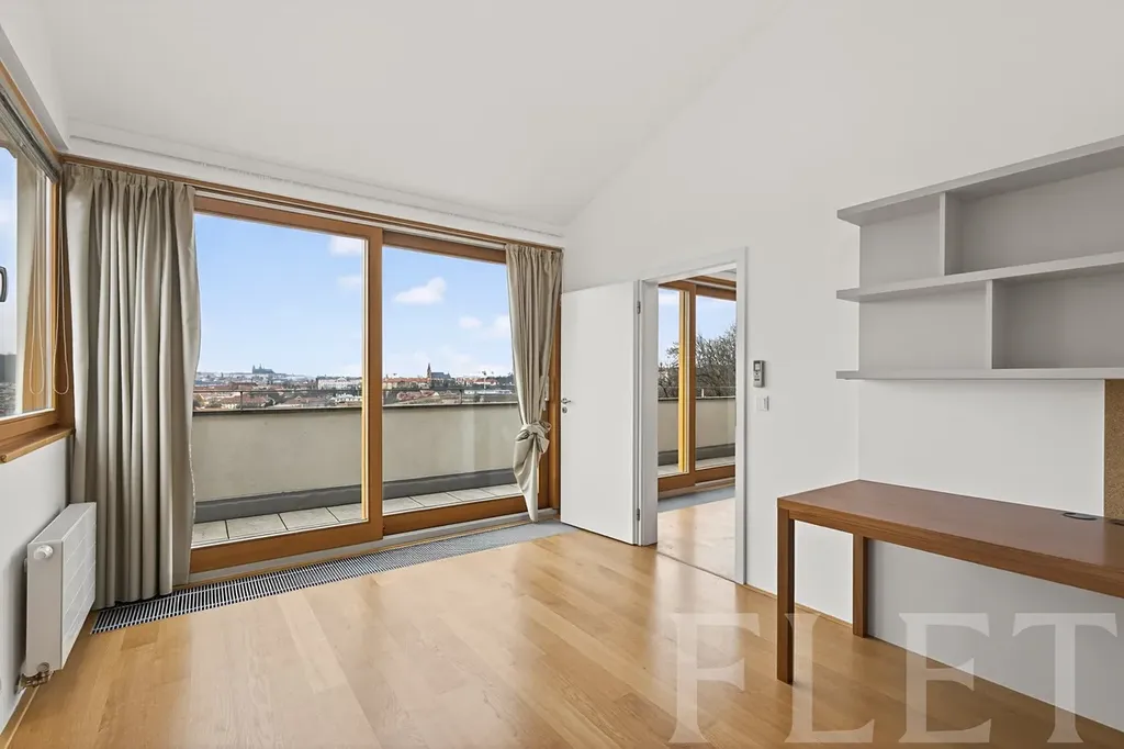 Jedním z hlavních benefitů jsou dva rozměrné balkóny s dechberoucím výhledem na celou Prahu. Nabízejí ideální místo pro ranní kávu, večerní posezení i klidný odpočinek s výhledem na panorama města. Díky orientaci bytu je interiér prosvětlený po celý den a působí mimořádně příjemným, otevřeným dojmem.