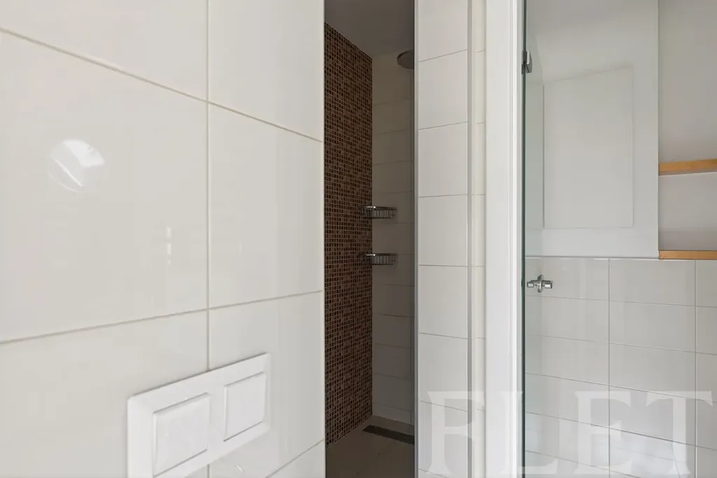 Dominantou interiéru je velmi prostorná moderní kuchyně vybavená špičkovými spotřebiči značky Miele, které uspokojí i ty nejnáročnější milovníky vaření. Byt disponuje dvěma elegantními koupelnami – jedna je vybavena vanou, druhá sprchovým koutem. Hlavní ložnice má vlastní koupelnu se sprchou a samostatnou šatnu, která zajišťuje maximální komfort a soukromí.