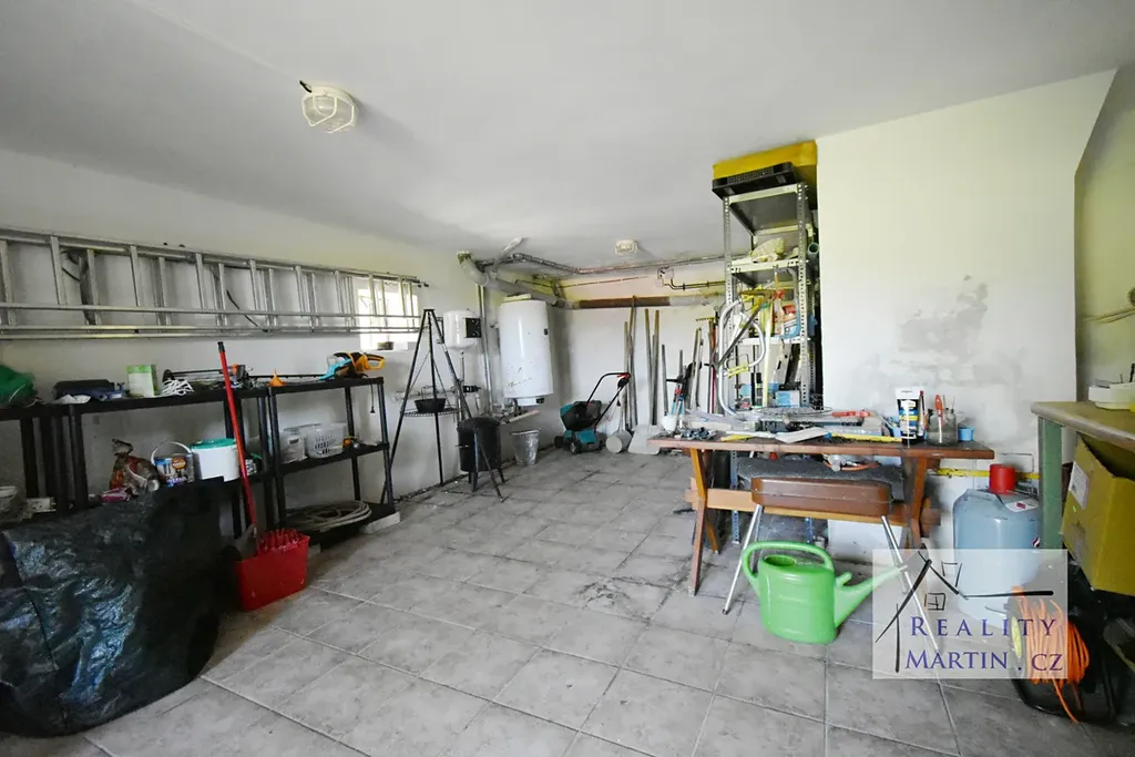 Pod chatou je garáž pro osobní automobil, dílna a další úložný prostor.