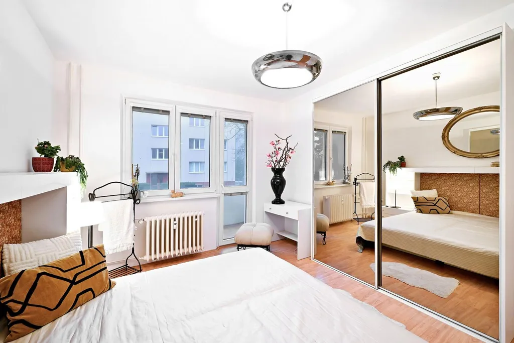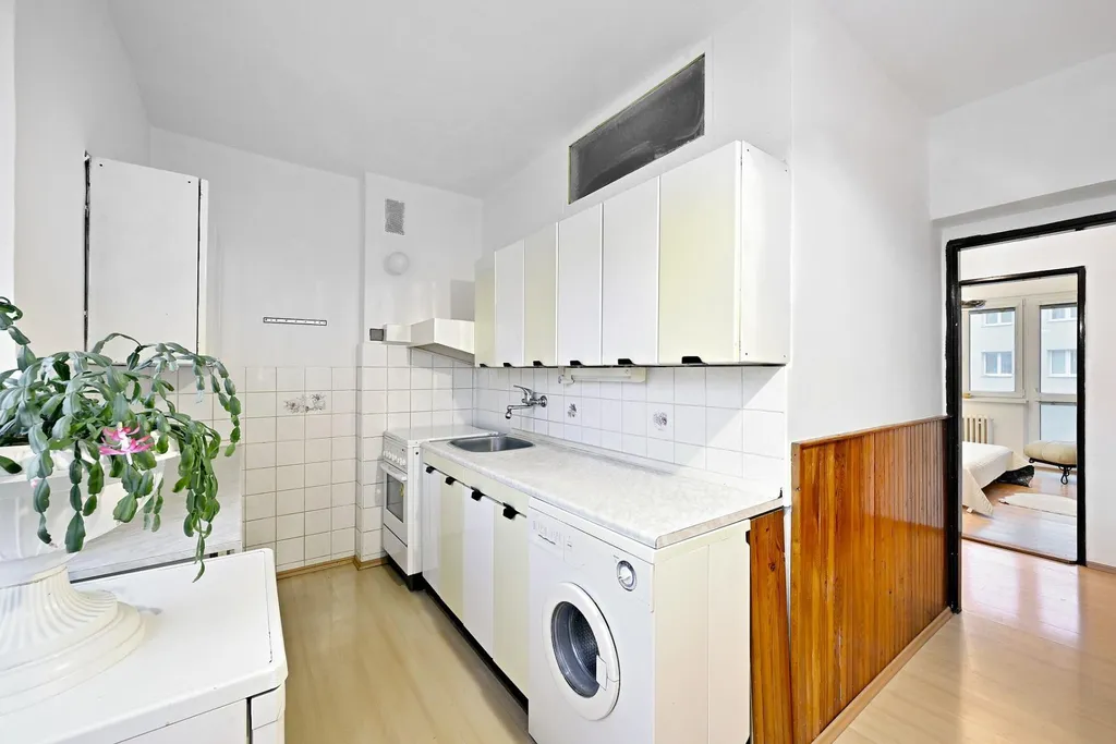 Dispozičně byt nabízí vstupní chodbu s vestavěnou skříní, samostatnou toaletu, koupelnu s vanou, kuchyni s jídelním koutem, samostatný pokoj, prostorný obývací pokoj a ložnici se vstupem na balkon orientovaný do klidného vnitrobloku s jižní orientací. Díky promyšlenému uspořádání působí byt velmi vzdušně a příjemně.