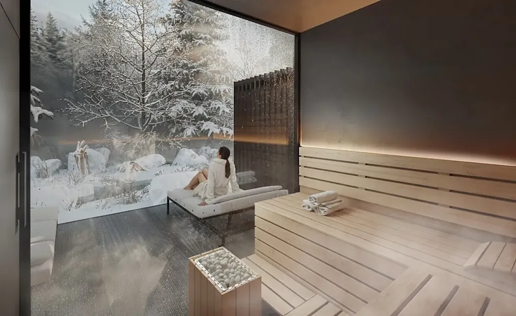 Jen pár kroků od vašeho apartmánu, v chladivém stínu lesa, na vás bude čekat několik privátních kabin se soukromou saunou, posilovnou nebo vyhřívanou kádí. Dopřejte si maximální relax za zvuků horského potoka.