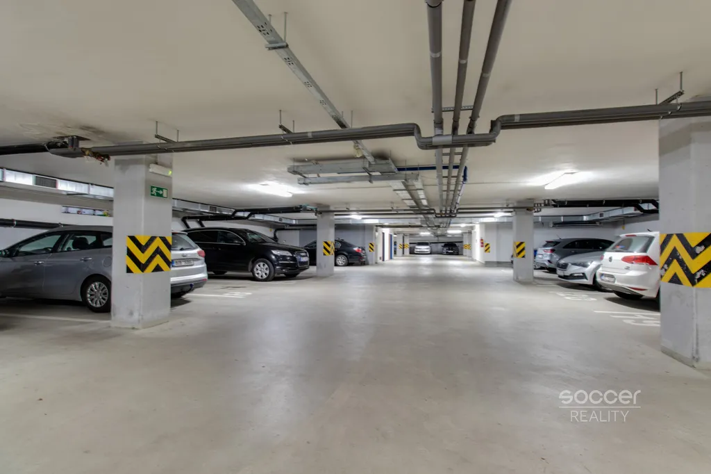 Součástí bytu je také samostatná místnost využívaná jako šatna se skříní, která nabízí dostatek úložného prostoru. Koupelna je vybavena sprchovým koutem a koupelnovým nábytkem, k dispozici je prostor pro pračku. Toaleta je oddělená. K bytu náleží garážové stání v suterénu domu, které zajišťuje pohodlné parkování.
