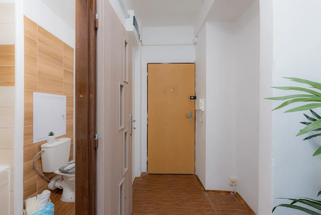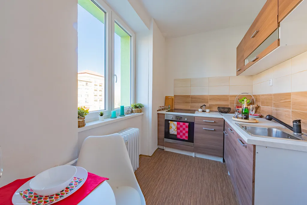 Nabízíme k pronájmu krásný byt 2+1 po částečné rekonstrukci. Byt se nachází ve 2 nadzemním podlaží (1. patře) panelového domu s výtahem a skládá se z obývacího pokoje, ložnice, kuchyně, chodby a koupelny s WC. Kuchyň disponuje kuchyňskou linkou s elektrickou varnou deskou a elektrickou pečící troubou. V předsíni jsou vestavěné úložné prostory – skříňky, věšáky na kabáty a botník s výsuvnými policemi. Mimo uvedené není byt vybaven nábytkem. Nájemné zde činí 9 500,- Kč, poplatky 2 000,- Kč pro 1 osobu + 500,- Kč každá další osoba. Vratná kauce činí 15 000,- Kč. Při rezervaci se platí provize realitní kanceláři ve výši 11 500,- Kč. Elektřina se přepisuje na nájemce. Byt bude volný od 1.3.2026. V případě zájmu o prohlídku či více informací neváhejte kontaktovat makléře.