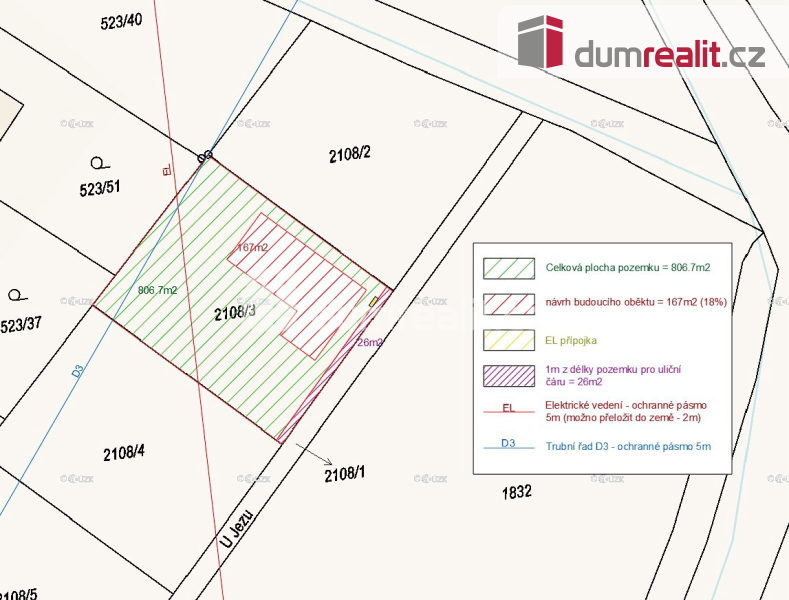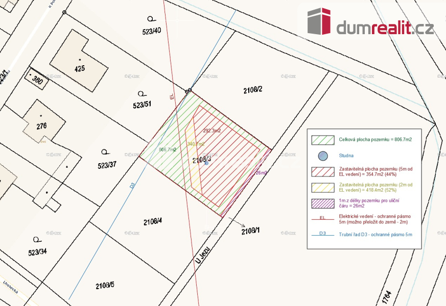 Celková plocha pozemku po odečtení 1 m od hranice na uliční prostor: 832,7m²