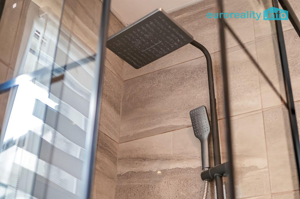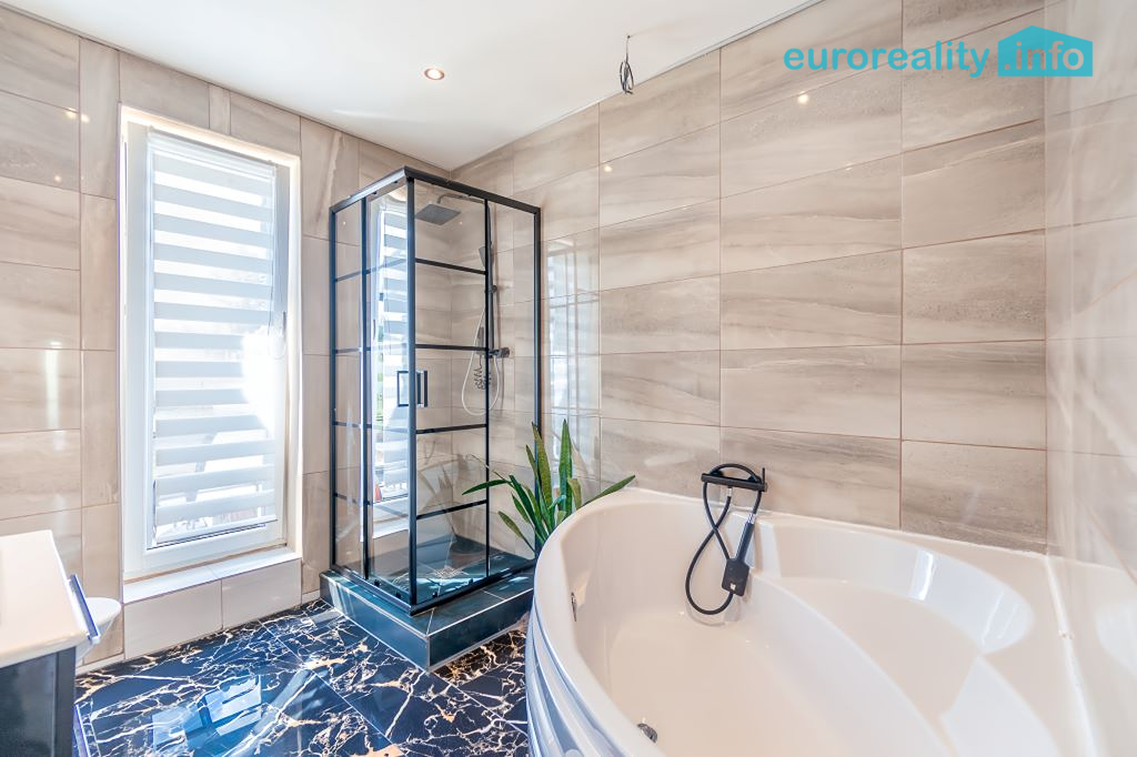 koupelnu se sprchovým koutem, vanou a WC,