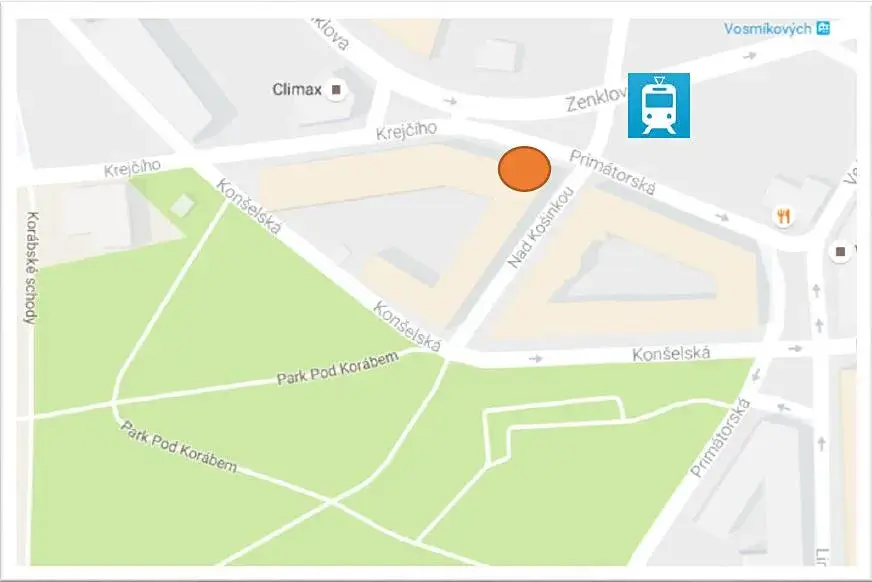 ul. Primátorská tedy s odděleným vstupem pro klienty a solo vstupem pro zásobování, III. vstup je potom