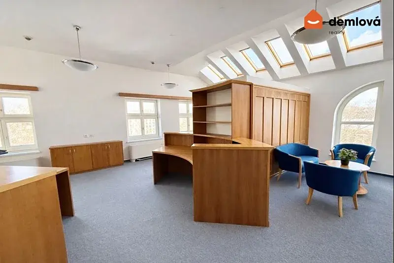 Kanceláře jsou situovány v horním patře budovy a disponují vlastním samostatným vstupem. Díky velkým oknům a střešním světlíkům je interiér po celý den dostatečně prosvětlen, působí vzdušně, čistě a profesionálně.