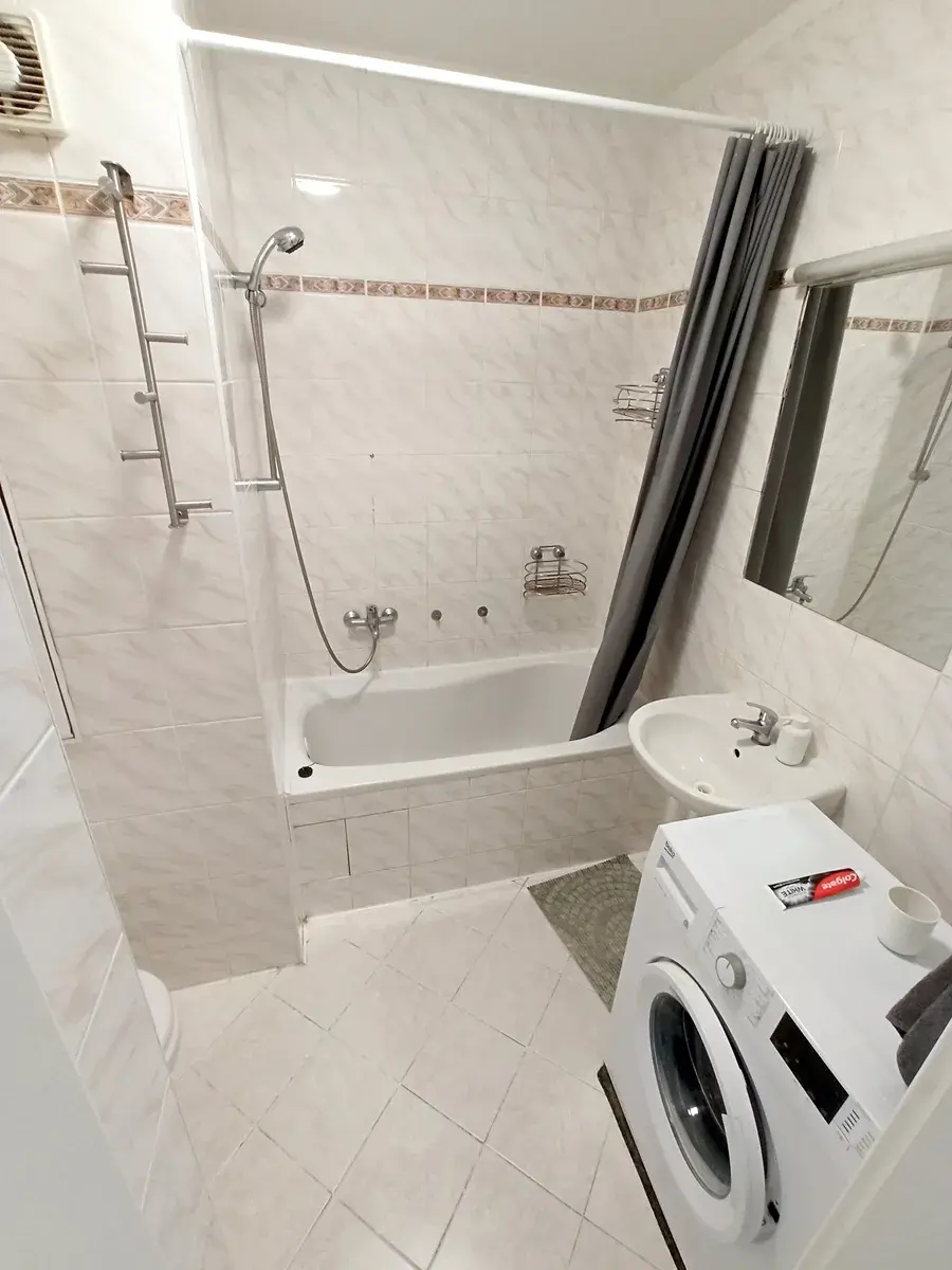 Pronájem hezkého bytu 2kk o ploše 44 m2 ve dvanáctém nadzemním podlaží v ulici Štúrova. V bytě je obývací pokoj s kuchyňským koutem se pěknou zánovní kuchyňskou linkou včetně elektro spotřebičů (myčka nádobí, sklokeramická varná deska, pečící trouba, lednice, mikrovlnná trouba, kuchyňský stůl se 4 židlemi, psací stůl, policový regál. Dále je v bytě koupelna s vanou, toaletou a pračkou, ložnice (s komodou, vysokou třídílnou skříní a prosklenou skříňkou), chodba (s botníkem a policovým regálem). Na oknech, která směřují do klidné ulice jsou závěsy. Topení a ohřev vody dálkové, podlahy plovoucí a dlažba. Internet není v ceně. K ceně se připočítávají poplatky za služby 3.500,- Kč/měs (vodné stočné, teplá voda, topení, odpad, úklid a ostraha, energie společných prostor a osvětlení, výtah, recepce) a vlastní záloha na elektřinu 1.200,-Kč/měs. Nedaleko se nachází Thomayerova nemocnice a IKEM. Parkování na ulici, nebo je možný pronájem parkovacího místa od externí společnosti. Poblíž domu je autobusová zastávka Zálesí a Nemocnice Krč, dále opodál stanice metra Kačerov. Velmi dobrá dopravní dostupnost.