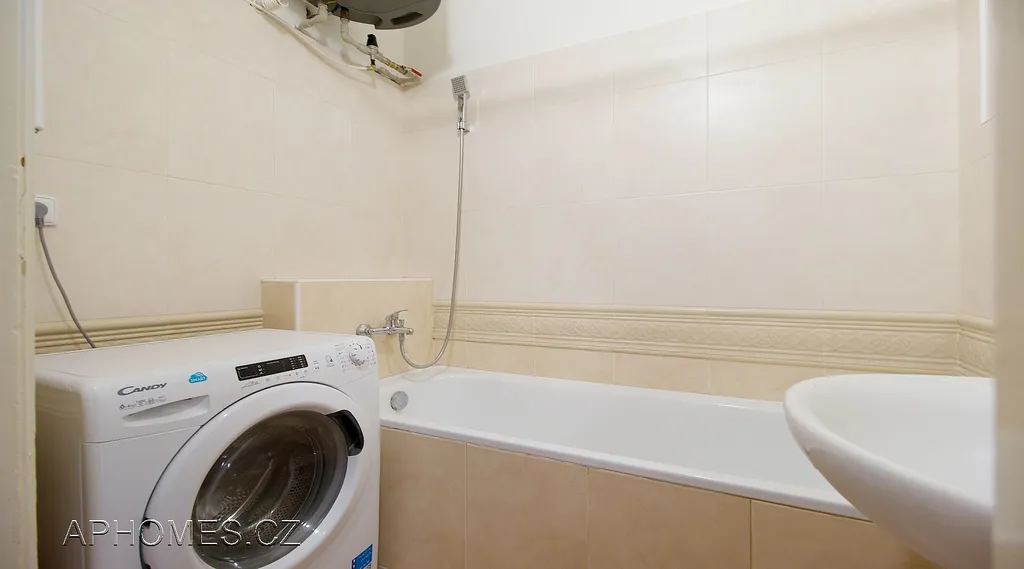 Součástí vybavení je kuchyňská linka, sporák a trouba, digestoř, lednice a pračka.