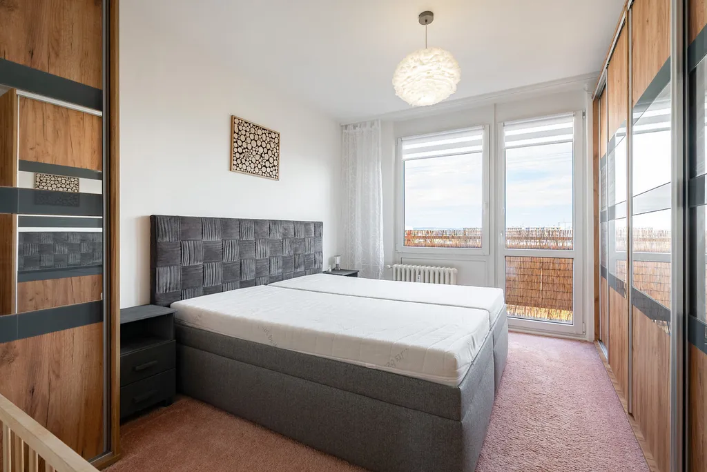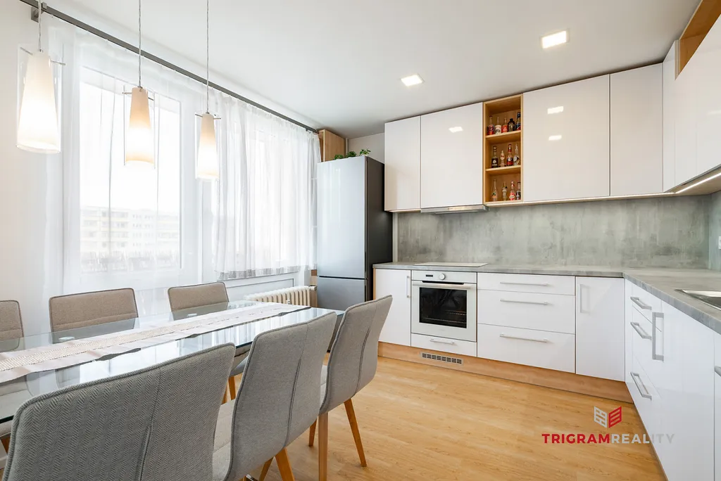 Zprostředkujeme prodej moderně zrekonstruovaného bytu 3+1 o velikosti 84,36 m² se čtyřmi lodžiemi. Byt je umístěn v 9. patře částečně zrevitalizovaného panelového domu na třídě Edvarda Beneše, v klidné části Moravského Předměstí. Orientace do dvou světových stran zajišťuje velmi dobré osvětlení a snadné větrání. Z dětského pokoje a ložnice se otevírá výhled do parku.