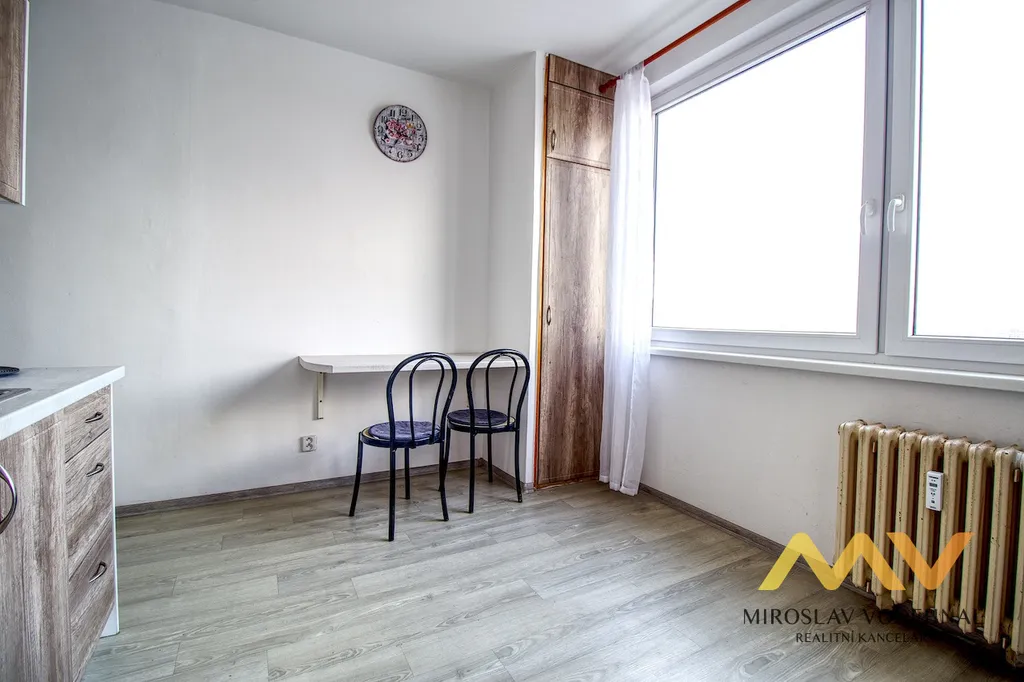 Jedná se o částečně zařízený, rekonstruovaný byt s pěkným výhledem do zeleně. Prostorná obyvatelná kuchyň nabízí kuchyňskou linku se spotřebiči (sklokeramická varná deska, el. trouba, odsavač par) a lednici s mrazákem. Pokoj je vybaven pohovkou, obývacím nábytkem a psacím pracovním stolem. Byt má zděné bytové jádro, koupelna je se sprchovým koutem a toaletou. V komoře, umístěné hned za vchodovými dveřmi, je velký úložný prostor a přípojka na pračku. K bytu náleží sklepní kóje.
