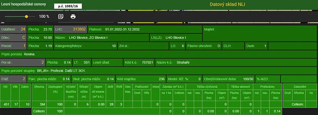 Dále p.č. 1076/1 vedená jako lesní pozemek o celkové výměře 11 209 m2, vlastníme podíl 1/8 tudíž 1 401 m2 a p.č. 1083/16 vedená jako lesní pozemek o celkové výměře 683 m2, vlastníme podíl 1/8 tudíž 85 m2.