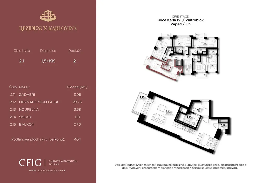 Byt je možné financovat hypotečním úvěrem, který Vám rádi zařídíme. Cena nemovitosti zahrnuje právní servis a neplatíte provizi, protože byt kupujete přímo od developera CFIG.