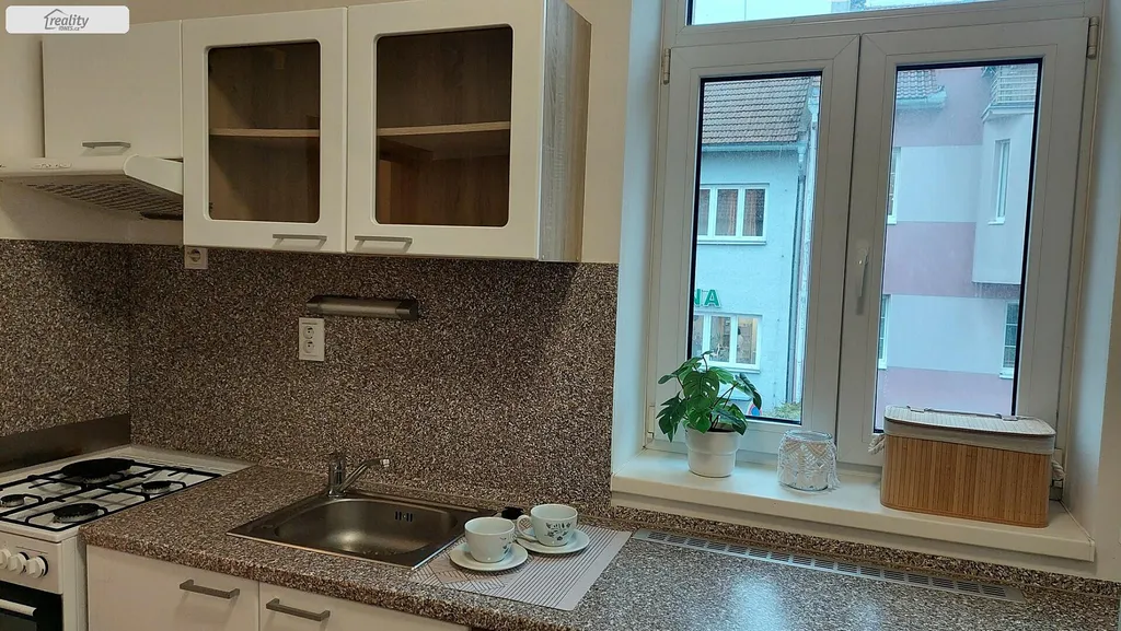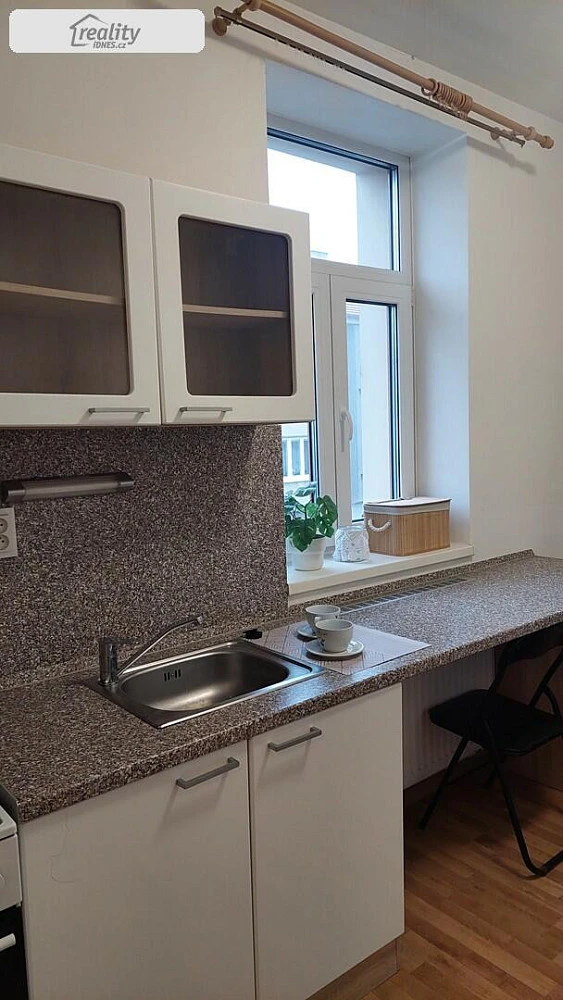 Pronájem bytu 1+1 v prvním patře cihlového domu na ulici Kotkova, celková plocha bytu je 35 m², byt je částečně zařízený, kuchyňská linka včetně spotřebičů, koupelna s WC.