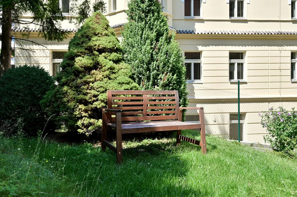 Nová rekonstrukce byt 1+kk s jihozápadními okny do zahrady, která je přístupná pro obyvatele domu. Velmi tichý byt, stejně tak se v celém domě dbá na klid.