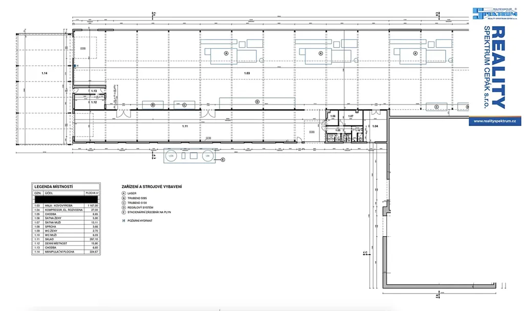 Pronájem vytápěné provozní haly vhodné pro skladování. Celková využitelná výměra budovy je 1.543m2. Součástí budovy je denní místnosti pro zaměstnance a sociální zařízení. Samostatný sklad a kompresorovna. Hlavní provozní hala o výměře 1.167m2 s betonovou podlahou o nosnosti 2.000kg/m2 má rozměry 78m x 15m. Provozní výška 6,5m. Vjezdová vrata do budovy mají rozměr 4,1m šířka x 4,3m výška. V současné době je hala využita pro těžkou kovovýrobu. Rozměry jednotlivých částí vč. plánu současného využití viz. fotografie. Elektrický příkon 420kW (600A), je možné i navýšení. Vytápění moderními plynovými topidly ROBUR s možností lokálního nastavování. K dispozici je krytý nákladový prostor o výměře 225m2 a další venkovní manipulační plochy. Přístup do areálu je 24/7. Areál má stálou ostrahu a vrátnici. Možnost pronájmu dalších prostorů v areálu (administrativa, výroba, manipulační plochy) .