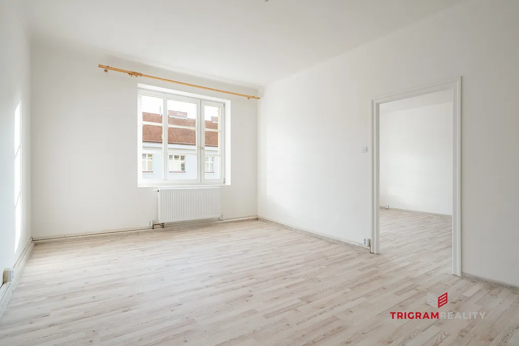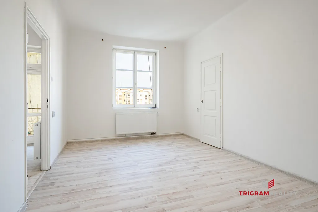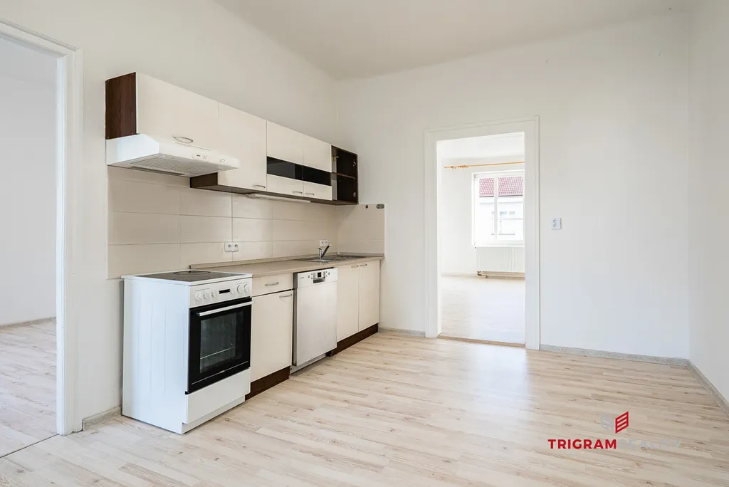 Byt prošel kompletní rekonstrukcí a nabízí praktické a světlé dispoziční řešení. Po vstupu do bytu vás přivítá prostorná obytná místnost s kuchyňským koutem, která poskytuje dostatek místa pro jídelní stůl i další úložný nábytek. Z této místnosti je přístup na balkon, toaletu a do dalších pokojů.