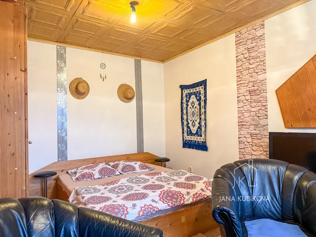 Dispozičně byt nabízí jeden prostorný obytný pokoj, který lze prakticky rozdělit na obývací a spací část. Kuchyň je vybavena kuchyňskou linkou a kamny. Koupelna je osazena vanou, umyvadlem a toaletou. V bytě se nachází vestavěná skříň, která poskytuje dostatek úložného prostoru.
