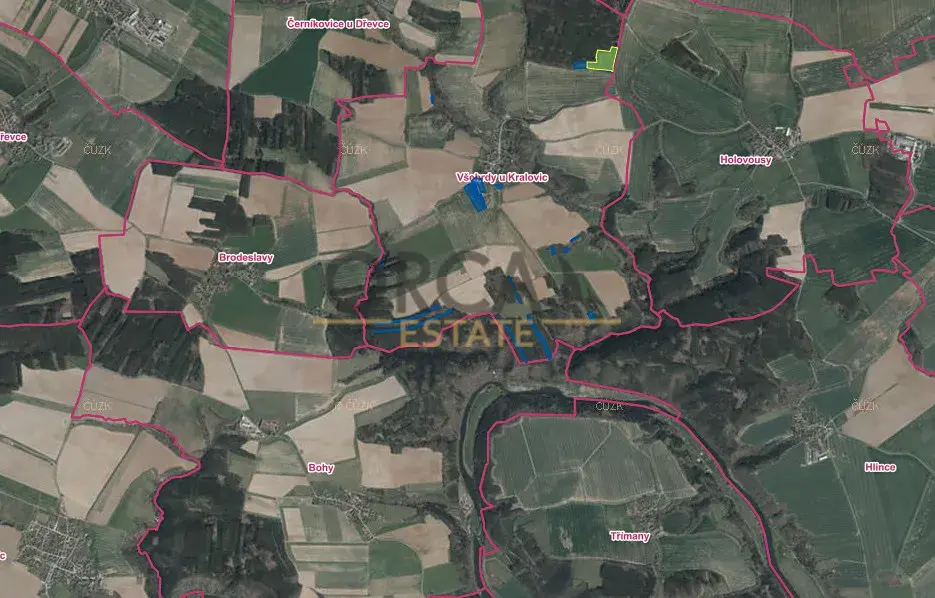Nabízíme k prodeji pozemky v katastrálním území Všehrdy u Kralovic o celkové rozloze 65 232 m2. Pozemky jsou zapsány na LV 135 s parcelními čísly 342/3, 405, 581/28, 1183, 2011/6, 2015/1, 2035/1, 2036, 2171, 2212, 2436, 2455, 2457, 2461, 2474, 2488, 2511. Vlastní je jediný majitel. Pozemky jsou na katastrálním úřadu vedeny jako les a orná půda. Cena za pozemky je 3 000 672,- (46 Kč/m2) + provize RK. Majitel je ochoten prodat menší část celku.