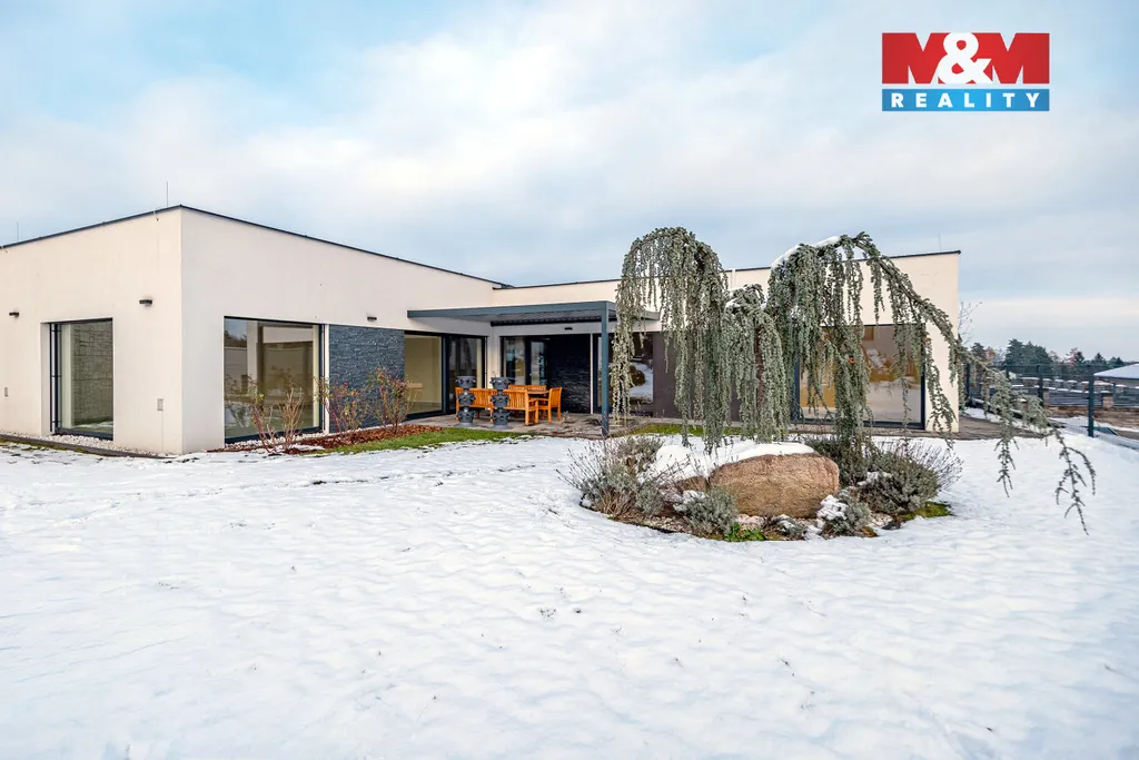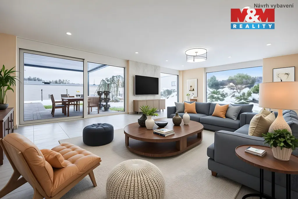 Prodej designové přízemní vily v klidných Doubravčicích, jen pár minut od Říčan. Podlahová plocha 163 m², pozemek 877 m² – ideální pro komfortní rodinné bydlení. Moderní architektura, kvalitní provedení a promyšlená dispozice: vzdušný obývací prostor s jídelnou a kuchyní, přímý vstup na krytou terasu a do zahrady, samostatné pokoje, 2 koupelny, šatní prostory a technické zázemí. Velké prosklené plochy přinášejí maximum denního světla, předokenní žaluzie soukromí i stínění. Nízkoenergetické provedení + fotovoltaická elektrárna, podlahové vytápění v celém domě. Bioklimatická pergola na dálkové ovládání podtrhuje atmosféru venkovního posezení. Pro více informací a termín prohlídky mě kontaktujte.