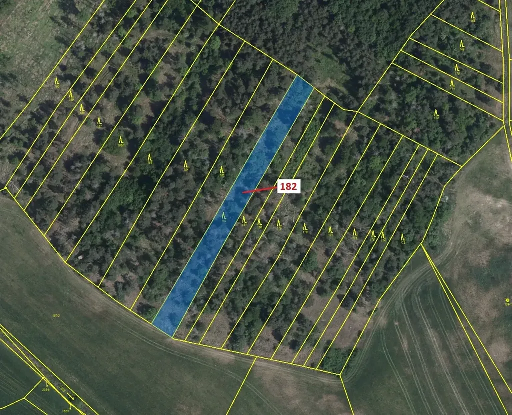 Lesní pozemek o výměře 2665 m2, parcelní číslo 182, podíl 1/1, katastrální území Klučov, obec Klučov, obec s rozšířenou působností Třebíč, okres Třebíč, Kraj Vysočina. Po těžbě.