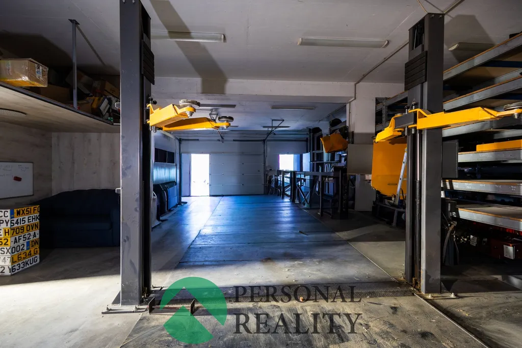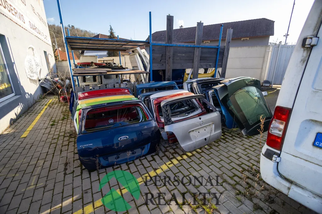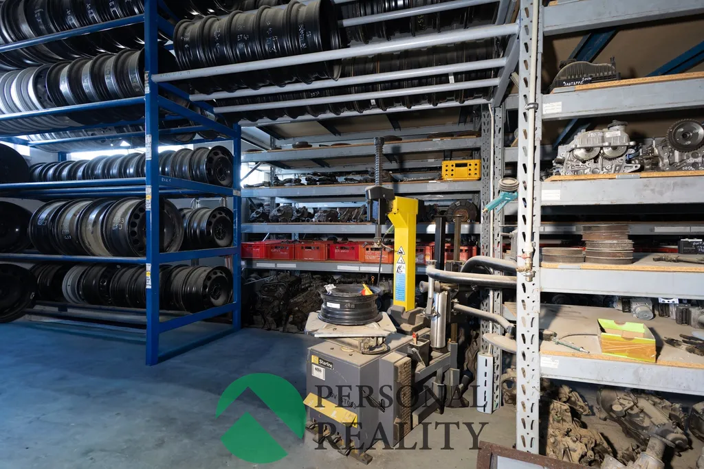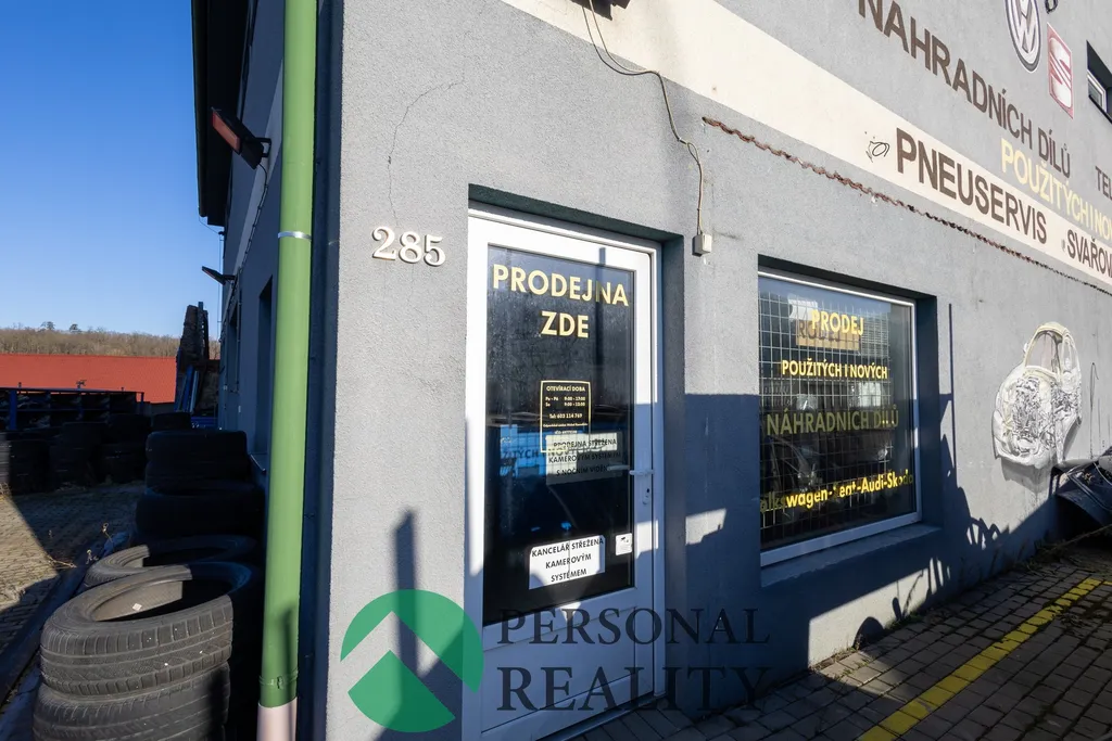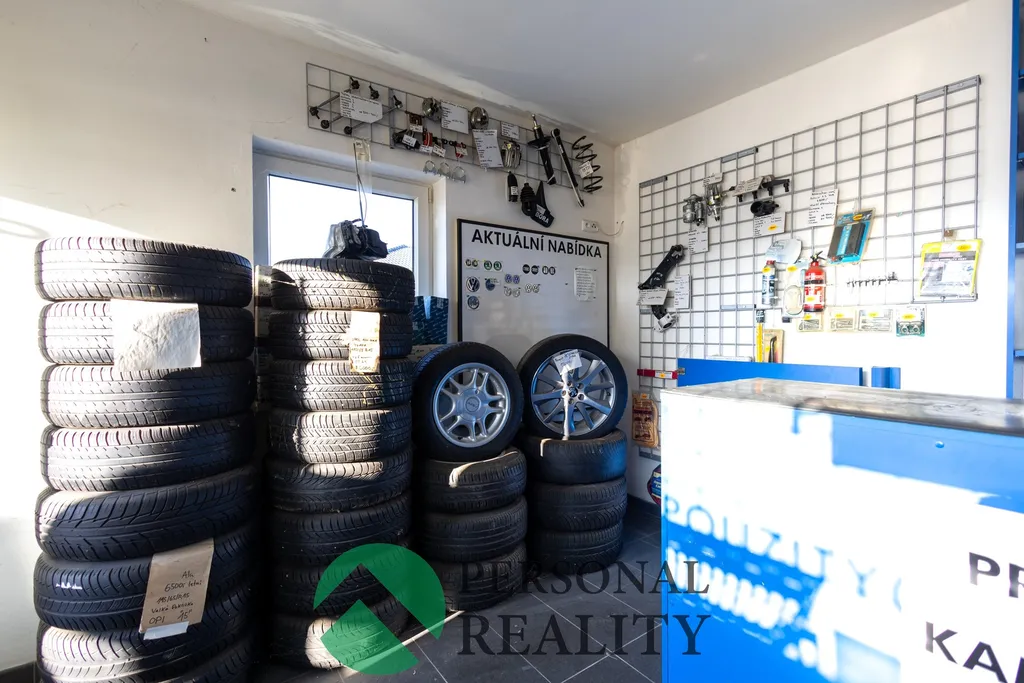 Podlahová plocha 411 m2 zahrnuje prostory pro servisní dílnu, prodejnu, zázemí a skladové prostory vybavené regály. Velké množství náhradních dílů v ceně nemovitosti.