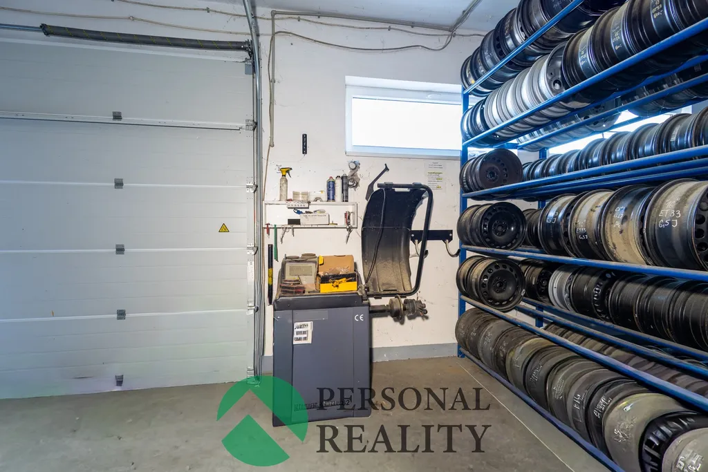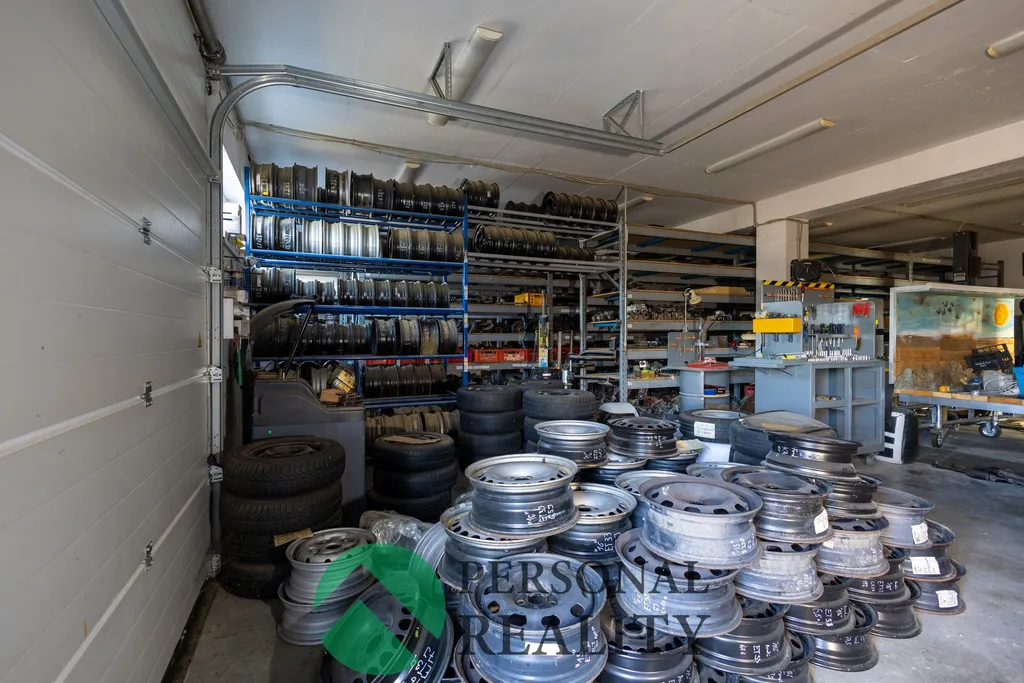 V přízemí budovy se nachází prodejna, část skladovacích prostor, pneuservis a sociální zázemí pro zaměstnance, WC, sprchový kout a kuchyňka. První patro zajišťuje skladovací prostory.