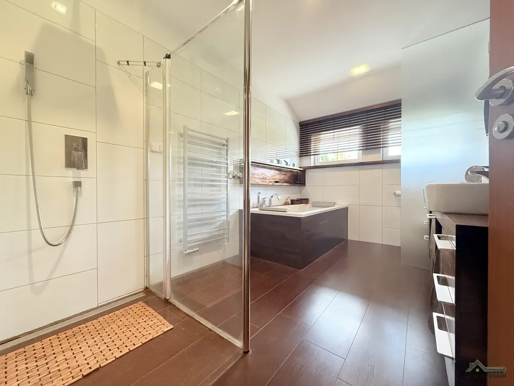 V Nemovitosti může zůstat kompletní vybavení na míru, zabezpečovací systém, nebo například vestavěné domácí kino. Není to ovšem podmínkou a nemá to vliv na prodejní cenu.