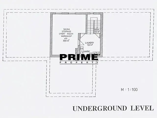 Dům je třípodlažní (suterén, přízemí a podkroví). Dispozice přízemí domu: vstupní hala, velký obývací pokoj (61m2) s krbem, jídelní částí a vstupem na zahradu, plně vybavená kuchyň s kuchyňskou linkou a novými spotřebiči Bosch (sklokeramická varná deska, trouba, myčka, lednice s mrazákem, mikrovlnná trouba a pračka), ložnice pro hosty, pracovna či ložnice, koupelna a samostatné WC. 1. patro: hlavní ložnice s vlastní koupelnou, další dvě ložnice, další koupelna, šatna a komora. Suterén: velká místnost (39m2) (vhodná k využití jako party/TV místnost nebo herna, posilovna či skladová místnost), vinný sklípek a prádelna.
