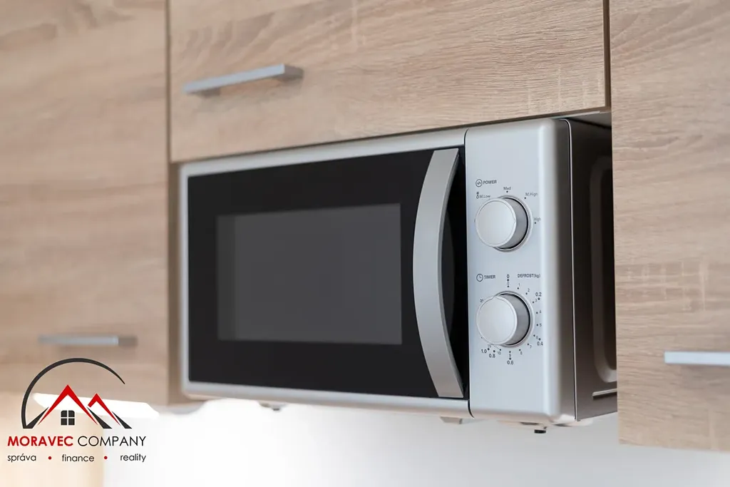 Vybavení bytu zahrnuje kuchyň s indukční varnou deskou, zabudovanou lednicí a mikrovlnnou troubou, koupelna je vybavena sprchovým koutem, praktickou skříňkou na hygienické potřeby a WC. Ohřev vody zajišťuje elektrický bojler.