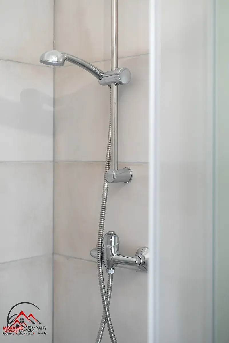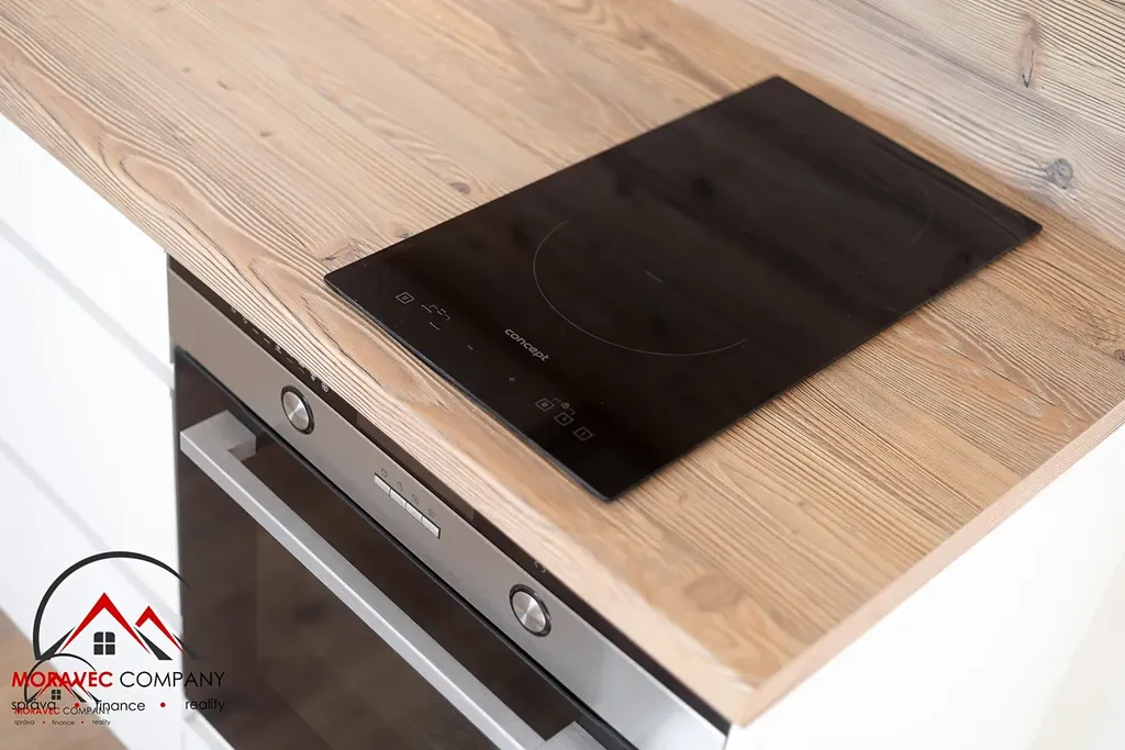 Vybavení bytu zahrnuje kuchyň s elektrickou troubou, indukční varnou deskou, digestoří, zabudovanou myčkou a mikrovlnnou troubou. Koupelna je vybavena sprchovým koutem a WC. Ohřev vody zajišťuje elektrický bojler.