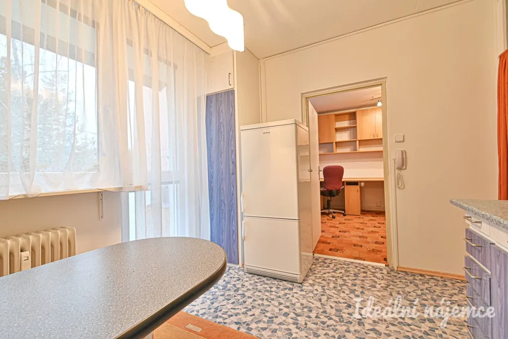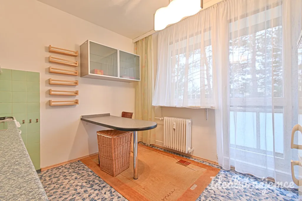 Byt se nabízí částečně vybavený. Kuchyně je vybavena lednicí s mrazákem, sporákem, troubou a digestoří. V kuchyni se nachází stůl se židlemi a úložné skříňky. Pokoj je zařízen konferenčním stolkem, židlemi, úložnými skříňkami a vestavěnou skříní. V koupelně je vana, umyvadlo a pračka. Toaleta je umístěna samostatně.