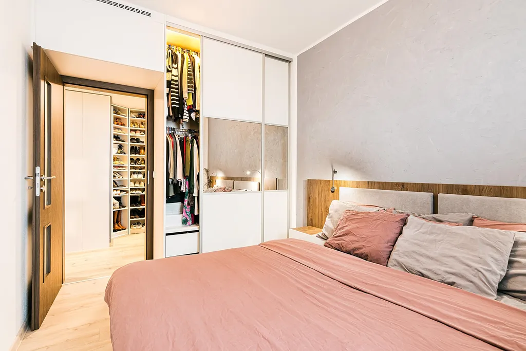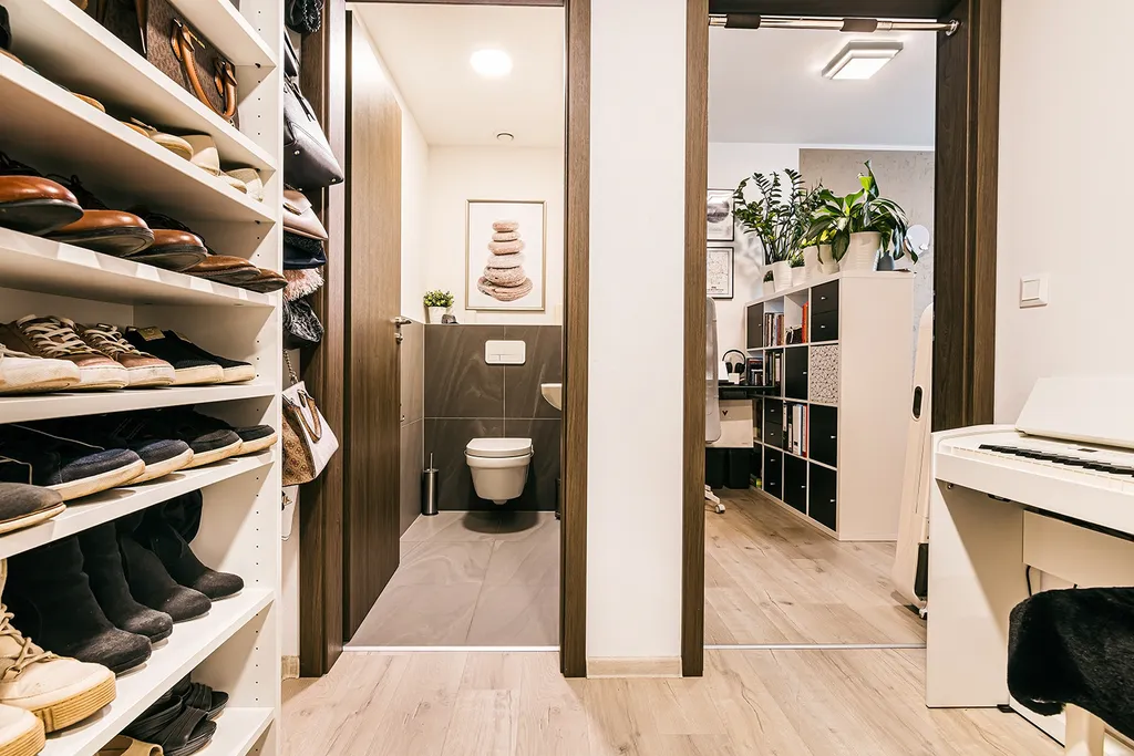 Na chodbě se nachází vestavěná šatní skříň a velká botníková stěna.