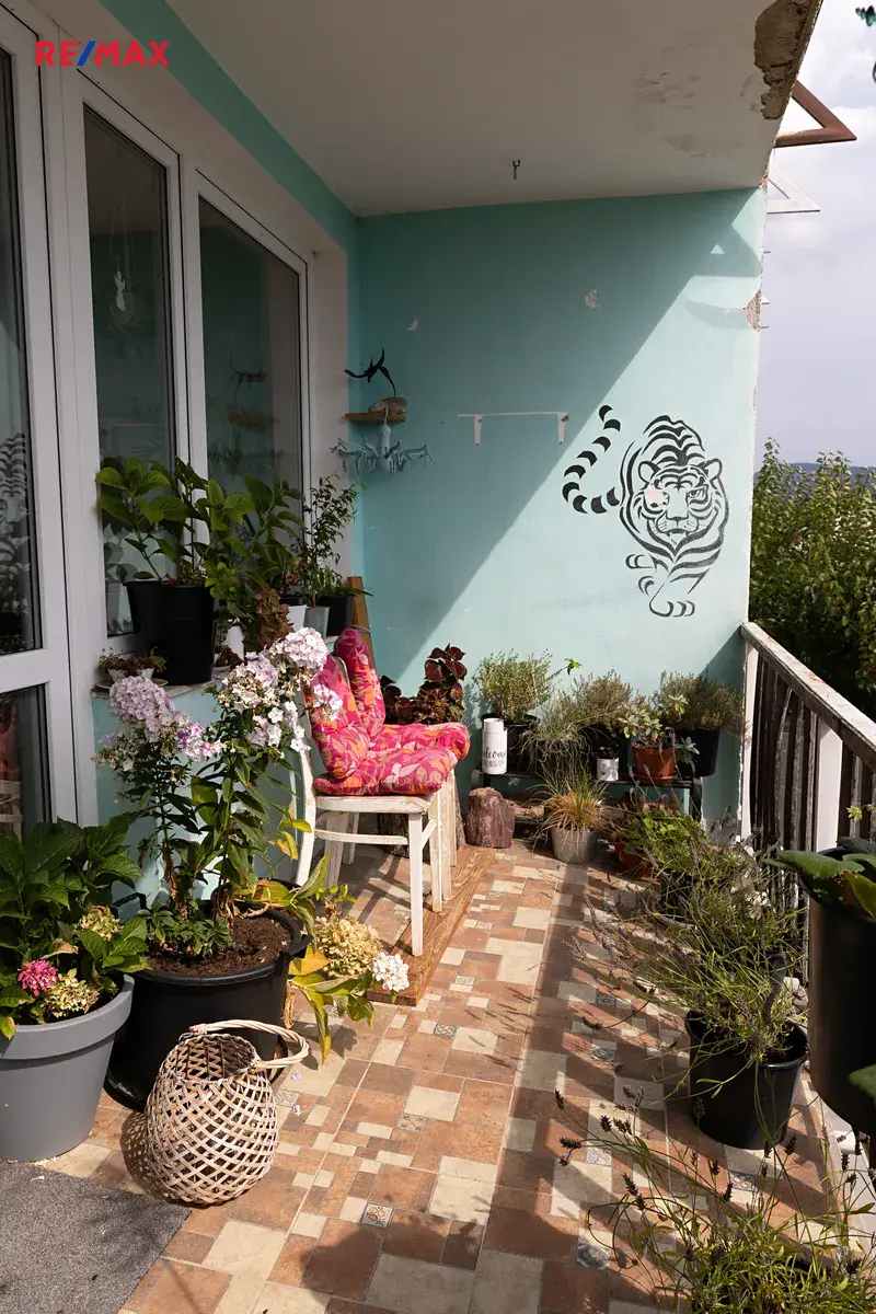 Dům nabízí dvě plnohodnotná podlaží, tři lodžie s krásnými výhledy a obytné prostory rozdělené tak, že se hodí i pro dvougenerační bydlení.