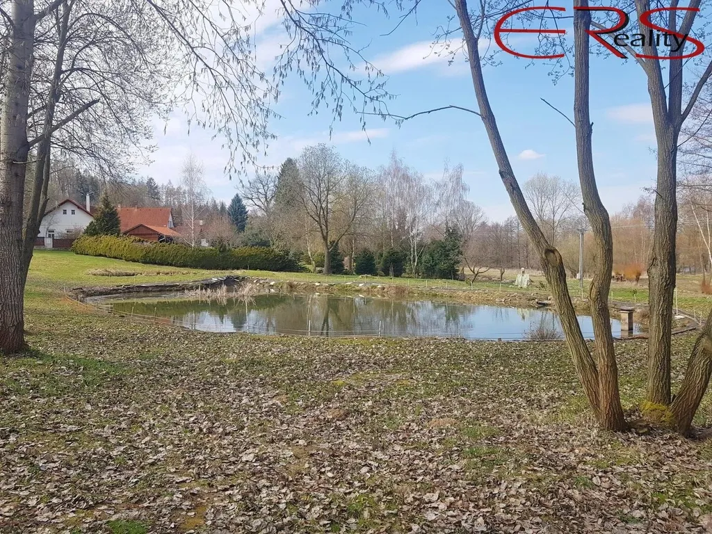 Romantické okolí – v těsné blízkosti okrasný rybníček dodávající pozemku jedinečnou atmosféru