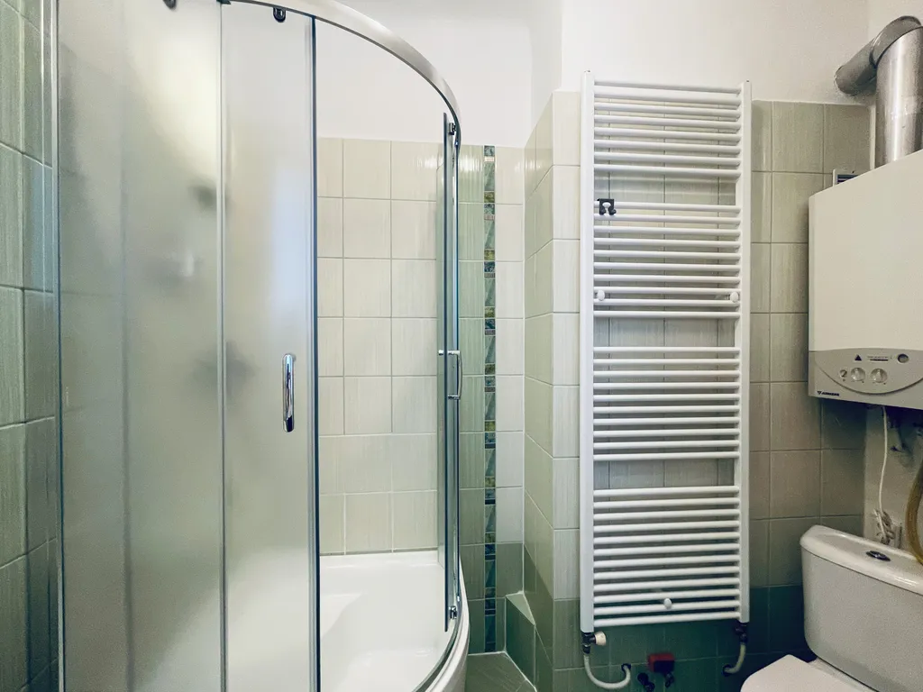 Koupelna je praktická a promyšlená – sprchový kout, umyvadlo a WC, před koupelnou je umístěna pračka, takže vše potřebné máte na dosah ruky. V bytě jsou žaluzie, takže si můžete regulovat světlo a soukromí podle potřeby. Součástí bytu je také větší sklep o velikosti cca 2,6 m², ideální na sezónní věci. Pro milovníky kol či rodiny s kočárky je k dispozici velká společná kolárna a kočárkárna, které jsou téměř prázdné a čekají jen na vaše využití.